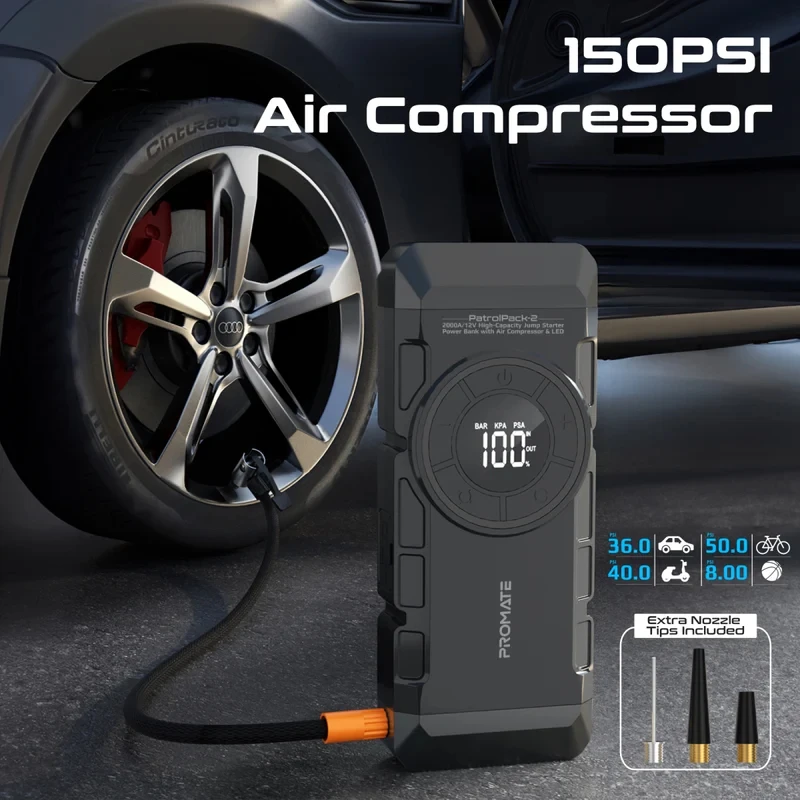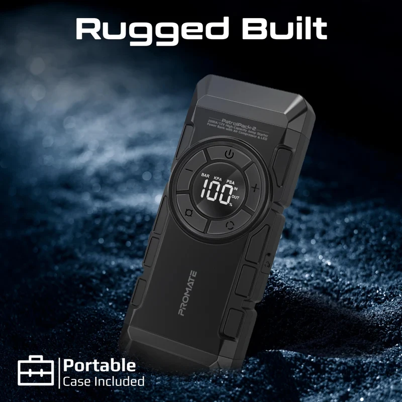 PatrolPack-2 یک دستگاه چندمنظوره 4 در 1 است که شامل جامپ استارتر خودرو، پاوربانک چند پورتی، کمپرسور هوا و چراغ قوه LED میباشد. این دستگاه با جریان پیک 2000 آمپر و ولتاژ 12 ولت، بهراحتی خودروها و موتورسیکلتها را روشن میکند. PatrolPack-2 همچنین دارای پاوربانکی با ظرفیت 12000 میلیآمپر ساعت است که پورتهای USB-C (با فناوری Power Delivery)، USB-A (QC 3.0) و پورت DC را برای شارژ دستگاهها فراهم میکند. کمپرسور هوا با ظرفیت 150PSI لاستیکهای خودرو، دوچرخه یا موتورسیکلت را باد میکند و بهطور خودکار پس از رسیدن به فشار تنظیمشده خاموش میشود. ویژگیها: • چندمنظوره 4 در 1: جامپ استارتر خودرو، پاوربانک چند پورتی، چراغ قوه LED و کمپرسور هوا در یک دستگاه. • جامپ استارتر قدرتمند: با جریان پیک 2000 آمپر و ولتاژ 12 ولت، مناسب برای روشن کردن خودروها و موتورسیکلتها. • پاوربانک 12000 میلیآمپر ساعت: مجهز به پورت USB-C (پاور دلیوری)، پورت USB-A (QC 3.0) و پورت DC برای شارژ دستگاههای مختلف. • کمپرسور هوا با ظرفیت 150PSI: امکان باد کردن لاستیکهای خودرو، دوچرخه یا موتورسیکلت با خاموش شدن خودکار پس از رسیدن به فشار مورد نظر. • چراغ قوه LED: دارای سه حالت روشنایی و قابلیت ارسال سیگنال SOS برای مواقع اضطراری. • طراحی مقاوم و قابل حمل: مناسب برای ماجراجوییهای خارج از خانه و سفرهای جادهای. • محافظت در برابر قطبیت معکوس: گیرههای هوشمند از شارژ معکوس و اتصال کوتاه جلوگیری میکنند. مشخصات فنی: • ظرفیت باتری: 12000 میلیآمپر ساعت، 14.8 ولت/44.4 وات ساعت (لیتیوم پلیمری) • ورودی USB-C: 5V/3A، 9V/2A، 12V/1.5A • خروجی USB-C: 5V/3A، 9V/2A، 12V/1.5A • خروجی USB-A: 5V/3A، 9V/2A، 12V/1.5A • خروجی DC: 12V-16V/10A • حداکثر فشار هوا: 150PSI • جریان استارت: 1000 آمپر • جریان پیک: 2000 آمپر • روشنایی چراغ LED: 600 لومن • حالتهای نور: 3 حالت (روشنایی، SOS، فلشر) محتویات بسته: PatrolPack-2، دفترچه راهنما، کیف EVA، گیرههای هوشمند جامپ استارتر، شلنگ هوا، کابل شارژ USB-C، نازلهای متفاوت (3 سایز مختلف)، آداپتور پورت فندکی این دستگاه با طراحی کاربردی و قابلیتهای چندمنظوره خود، همراهی ایدهآل برای هر ماجراجویی یا شرایط اضطراری در جاده است.