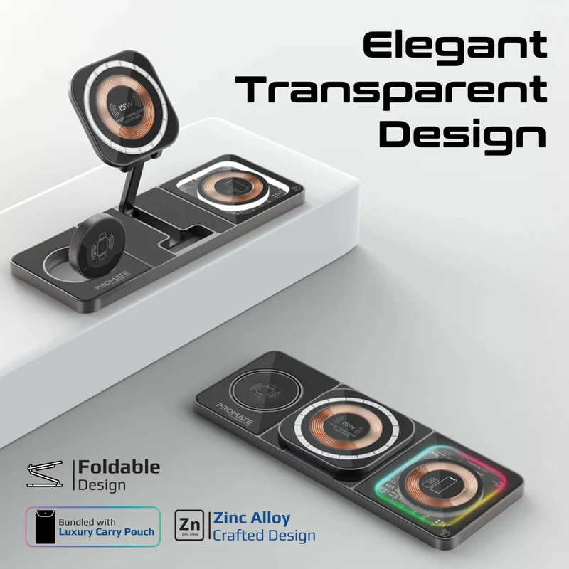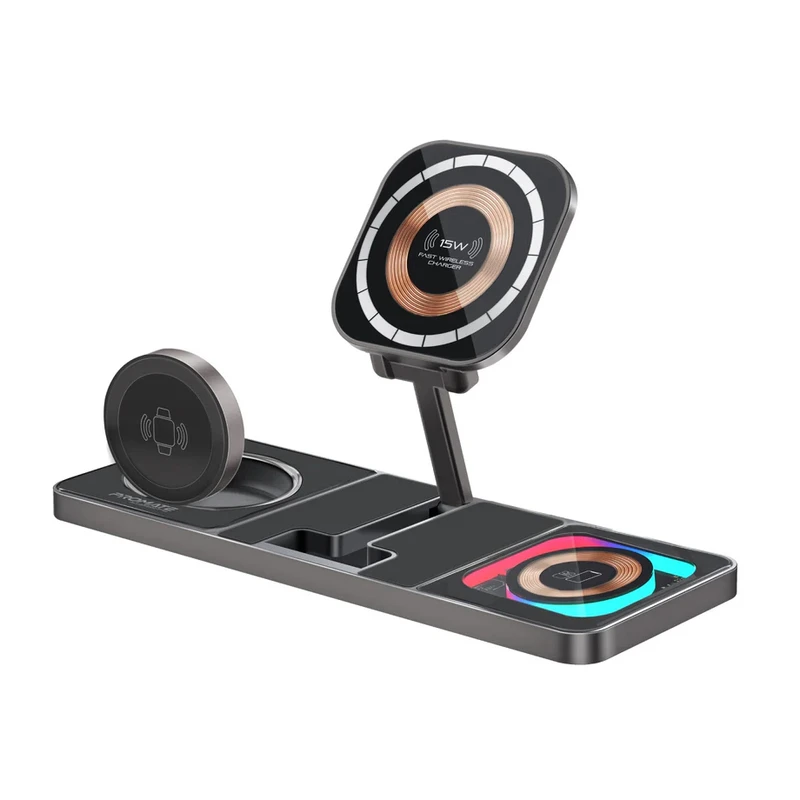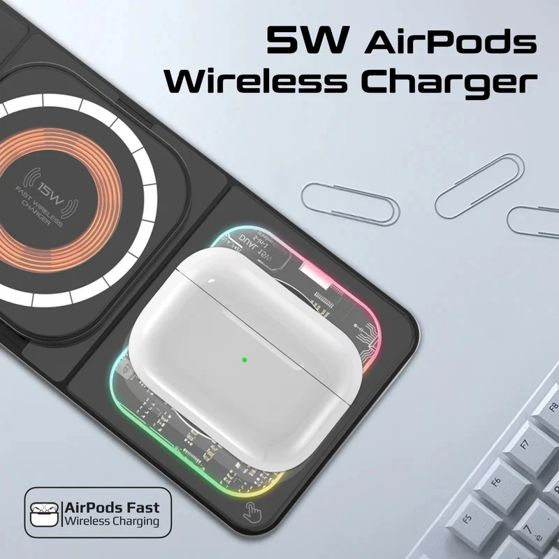 ایستگاه شارژ 3 در :1 امکان شارژ همزمان گوشی، ایرپاد و اپل واچ برای ساده سازی روال شارژ روزانه.