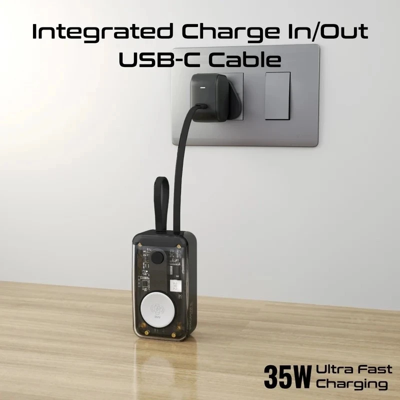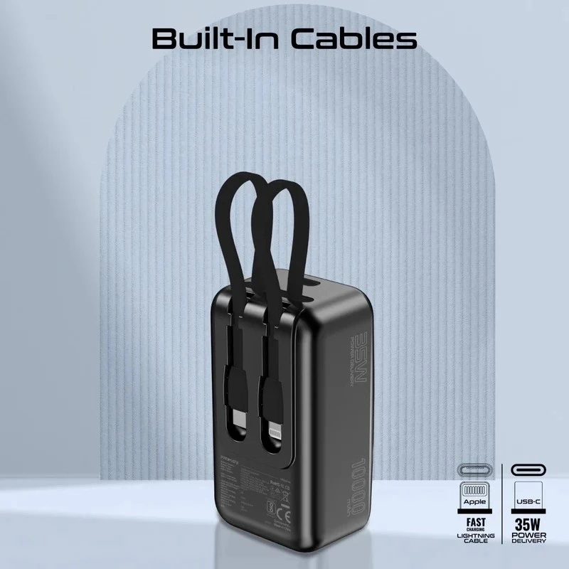 کابل های داخلی: با کابل های داخلی C-USB و لایتنینگ که در این پاوربانک وجود دارند، دیگر نیازی به حمل کابل های اضافی نخواهید