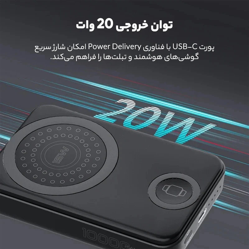 آیفون، اپل واچ و دستگاههای USB-C خود را با پاوربانک PowerMag-Trio به صورت بیسیم و همزمان در حین حرکت شارژ کنید. این پاوربانک با قابلیت شارژ بیسیم سازگار با MagSafe با توان 15 وات، به طور کامل با آخرین سریهای آیفون هماهنگ شده و شارژ فوق سریع را ارائه میدهد. پد شارژ مغناطیسی برای Apple Watch، دستگاههای شما را با توان بهینه 2.5 وات شارژ میکند. پورتهای Power Delivery 20 وات این امکان را فراهم میکند که دستگاههای USB-C خود را تا 4 برابر سریعتر شارژ کنید. PowerMag-Trio با طراحی سبک و قابل حمل، یک راه حل عالی 3 در 1 برای شارژ دستگاههای شما در حین حرکت است. ویژگیهای محصول: باتری قدرتمند: باتری 10000 میلیآمپرساعت قدرتمند لیتیوم-پلیمر میتواند دستگاههای شما را در هر زمان و مکانی شارژ نگه دارد. شارژر سازگار با MagSafe با توان 15 وات: شارژر سازگار با MagSafe با گوشی هوشمند شما همتراز شده و دستگاههای سازگار را با سرعت بالا شارژ میکند. شارژر Apple Watch: شارژر بیسیم مغناطیسی با اپل واچ شما همتراز شده و دستگاههای شما را با سرعت 2.5 وات شارژ میکند. ارائه خروجی 20 وات: پورت USB-C با فناوری Power Delivery امکان شارژ سریع گوشیهای هوشمند و تبلتها را فراهم میکند. شارژ همزمان 3 در 1: باتری قدرتمند 10000 میلیآمپر ساعت لیتیوم-پلیمر میتواند دستگاههای شما را در هر زمان و مکانی شارژ نگه دارد. شارژ سریع و راحت: فقط دستگاههای خود را روی شارژر قرار دهید و از شارژ سریع لذت ببرید. این محصول با انواع قابلها و محفظههای استاندارد سازگاری دارد. ایمنی شارژ بالا: سیستم ایمنی داخلی از پاوربانک و گوشیهای متصل در برابر دمای بالا، جریان بیش از حد و اتصال کوتاه محافظت میکند.