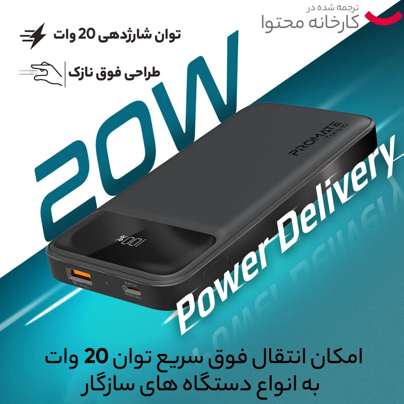 خروجی 20 وات از پورت C-USB با فناوری شارژ سریع Delivery Power
