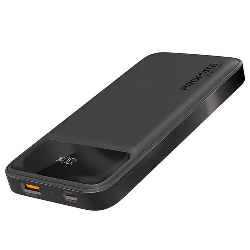شارژر همراه (پاوربانک) فشرده پرومیت مدل TORQ-10.BLACK ظرفیت 10000 میلی آمپر ساعت پاوربانک TORQ-10، یک محصول بسیار باریک و ظریف به ظرفیت 10000 میلیآمپرساعت است. این محصول با پورتهای USB-C PD و USB-A Quick Charge، شارژ با سریعترین سرعت را ممکن میکند. فناوری شارژ دینامیک، مقدار مناسب جریان بر اساس دستگاهی که در حال شارژ است، را تامین میکند و مانع از شارژ بیش از حد و خرابی در دستگاههای کاربران میشود.