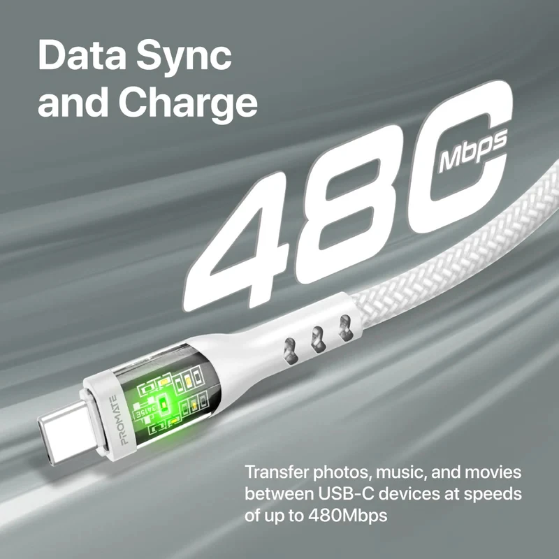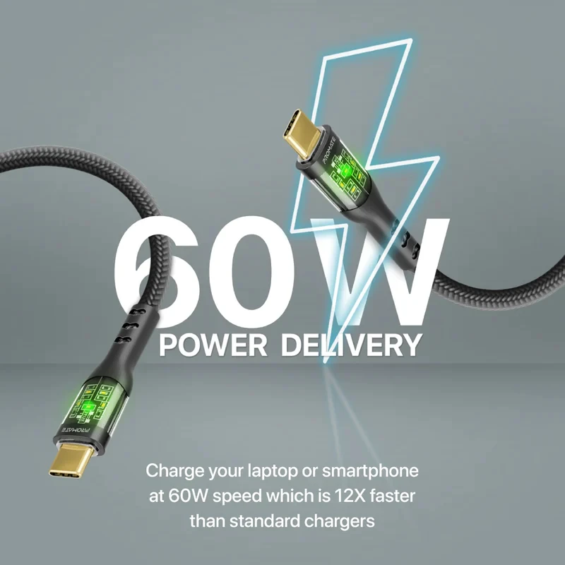 کابل USB-C به USB-C شارژ سریع پرومیت مدل TRANSLINE-CC.BLACK به طول 1.2 متر TransLine-CC کابل تایپ سی بینظیری با یک طراحی منحصر به فرد است. دستگاه لپتاپ یا گوشی هوشمند خود را با سرعت 60 وات شارژ کنید، که 12 برابر سریعتر از کابلهای شارژ استاندارد است. با یک پوشش خارجی محکم از نایلون بافته شده به منظور مقاومت در برابر آسیب بیرونی و پوششهای شفاف با چراغهای LED تقویت شده، این کابل دوام فوقالعادهای دارد و برای مدت زمانی طولانی همراه شما خواهد بود. TransLine-CC به طور دقیق برای استفاده بیعیب و نقص با مجموعه گستردهای از دستگاهها طراحی شده، طراحی محصول به نحوی است که عملکرد بهینه را تضمین میکند. با سرعت انتقال داده 480 مگابیت بر ثانیه، این کابل تبادل داده سریع و کارآمد را تسهیل میکند. با TransLine-CC، در تجربهای شارژ فوقالعاده سریع غرق شوید، جایی که طراحی نوین با کارایی برتر ترکیب میشود. مشخصات محصول: نوع اتصال: USB-C به USB-C/ مناسب شارژ سریع با فناوری Power Delivery پشتیبانی از شارژ فوق سریع با توان 60 وات- 12 برابر سریعتر از کابلهای معمولی پوشش خارجی محکم از نایلون بافته شده/ غلاف شفاف تقویت شده با چراغهای LED مقاوم در برابر بیش از 25000 بار خم شدن/ عمر 25 برابری نسبت به کابلهای استاندارد طراحی زیبا و منحصربهفرد/ طول کابل 1.2 متر