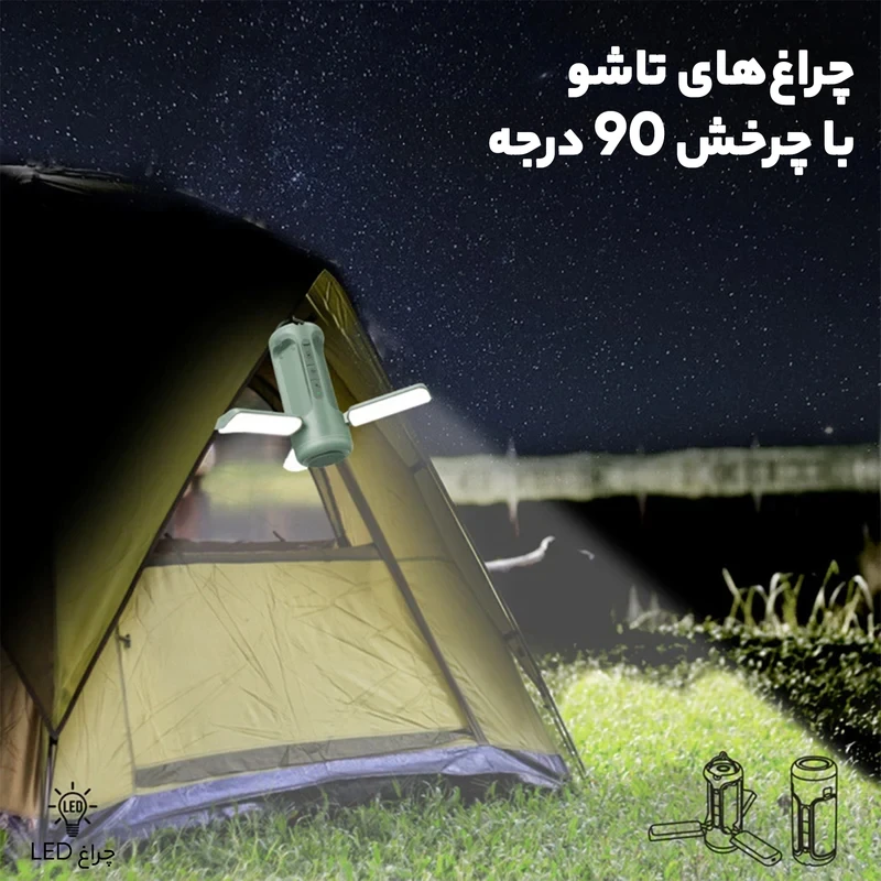 چراغ های تاشو 90 درجه: این کیت کمپینگ دارای سه چراغ LED قابل تنظیم 90 درجه با حداکثر روشنایی 750 لومن است.